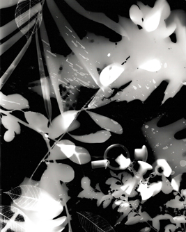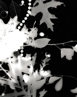 Photograms made by combining organic folliage with charms and jewelry. |